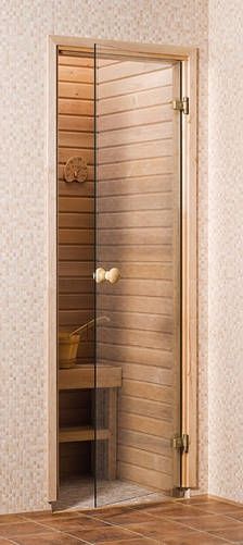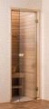 Saunas durvis tiek izgatavotas no 8 mm rūdīta stikla. Durvju komplektācija iespējama ar dažādu veidu tonētiem stikliem: pelēks, bronza, kā arī vairāku veidu dekoratīviem stikliem. Iespējams iegādāties durvis ar ķīmiski matētu zīmējumu. Saunas durvju kārba izgatavota no līmētas lapu koka koksnes. Saunas durvīm izmanto speciāli stikla vērtnēm paredzētas firmas “Abloy” eņģes KS-6540, FL-48; firmas “Abloy” fiksators “Abloy-4238”. Saunas durvīm ir kārbas blīvējums – karstumizturīgs silikons.
