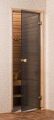 Saunas durvis tiek izgatavotas no 8 mm rūdīta stikla. Durvju komplektācija iespējama ar dažādu veidu tonētiem stikliem: pelēks, bronza, kā arī vairāku veidu dekoratīviem stikliem. Iespējams iegādāties durvis ar ķīmiski matētu zīmējumu. Saunas durvju kārba izgatavota no līmētas lapu koka koksnes. Saunas durvīm izmanto speciāli stikla vērtnēm paredzētas firmas “Abloy” eņģes KS-6540, FL-48; firmas “Abloy” fiksators “Abloy-4238”. Saunas durvīm ir kārbas blīvējums – karstumizturīgs silikons.