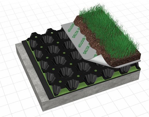 DELTA ®-FLORAXX ir perforēta drenāžas membrāna īpaši paredzētas izmantošanai dārza jumta konstrukciju. Produkts piedāvā lielus un 20 mm augsts bedrītes ar un astoņstūra forma izcilu spiedes stiprību. Sakarā ar tās augsto ūdens aizturēšanas spēju un spēju efektīvi notecēt lieko ūdeni šī īpašā membrāna ir ideāli piemērota izmantošanai ekstensīvos vai intensīvos jumta dārzi.