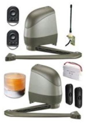 Komplektācija: 2 x motori, fotoreleja pāris, 2 x pultis, signāllampa.