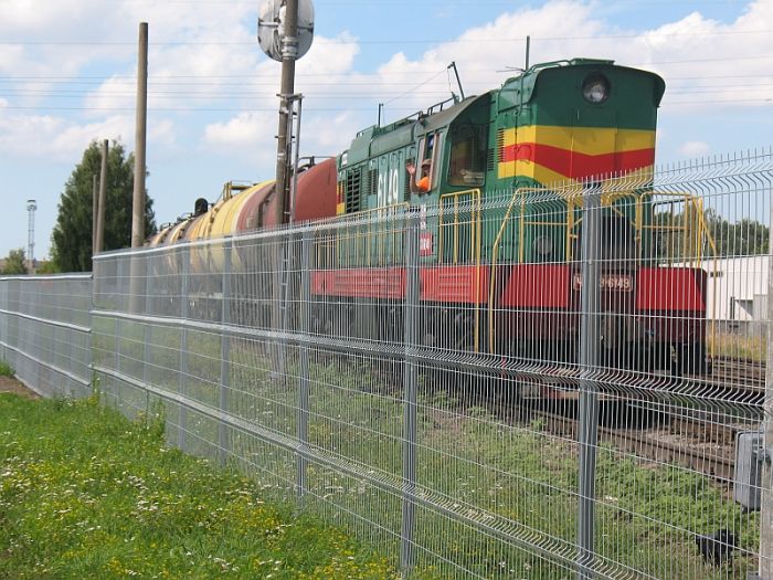 Stingri metināts paneļu žogs ar taisnstūra aci un horizontālu pastiprinājumu garantē žoga stingrību.