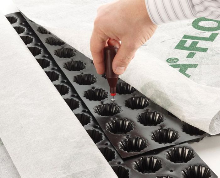 | Ciļņota, perforēta ģeomembrāna ar ģeotekstila slāni horizontālai drenāžai |