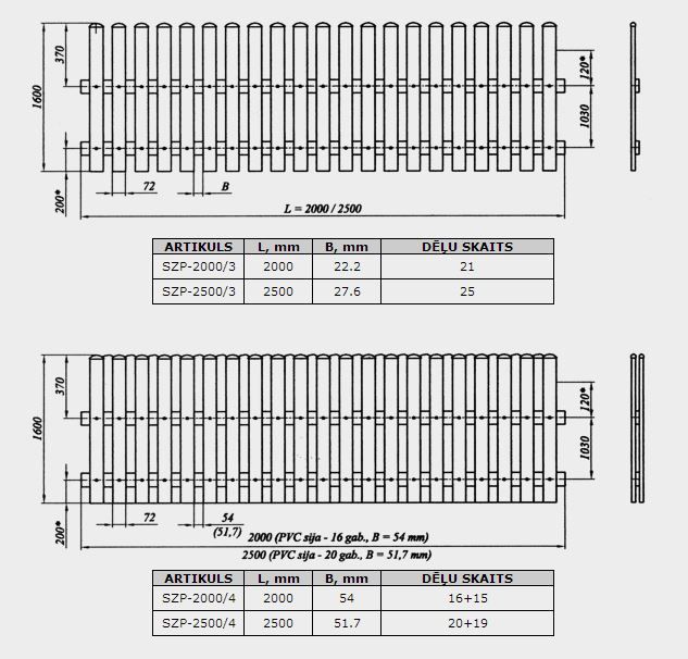 Šķērssija žoga dēlis no PVC 72x18x1600mm