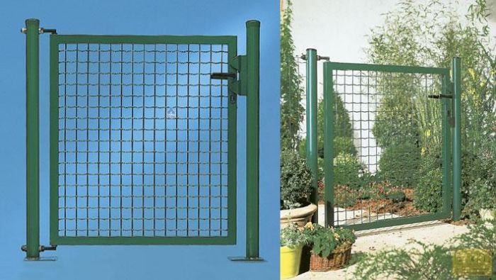 Komplektā: vērtne, 2 stabi, eņģes, slēdzenes komplekts, plastikāta rokturis.