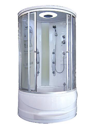 Komplektā ietilpst: spogulis, rokas duša, augšējā masāžas duša, 6 sprauslas ķermenim, kāju masāža, plauktiņš, augšējā apgaismošanas lampa, sēdeklis, aukstā un kārstā ūdens pievadi, sajaucējs un pārslēdži. |  ( + ) palielināt
