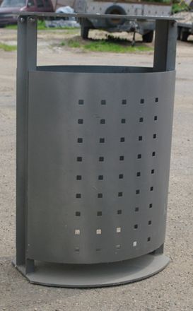 Atkritumu urna ar paceļamu vāku no perforēta metāla ar masīvu pamatni, aizslēdzama ar atslēgu.