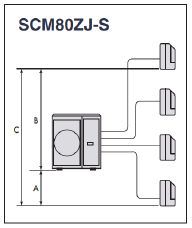 "Multi split" sistēma nozīmē, ka pie vienas ārdaļas, atkarībā no modeļa, var pieslēgt 2-4 iekšējos blokus (sērija SCM ārdaļa, SKM iekšējie bloki). Sistēma laba, ja mājai ir vairākas mazas telpas un tām katrai nelietderīgi būtu pieslēgt atsevišķu SPLIT moduli.