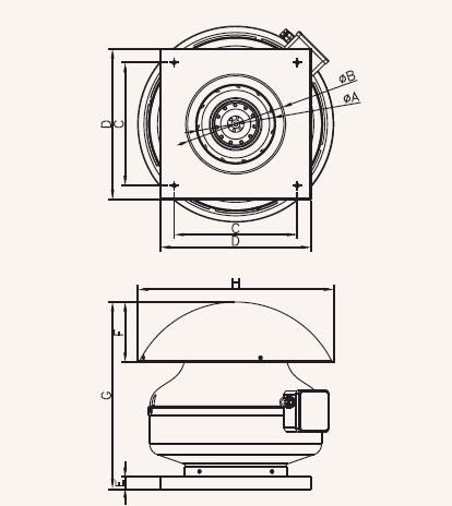 Ventilatora motors ir aprīkots ar lodīšu gultņiem un vāciņu, kas pasargā no nokrišņu iekļūšanas ventilatorā un ventilācijas sistēmā.